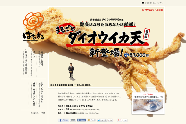 栄養満点!「まるごとダイオウイカ天」新発売。|はなまるうどん
